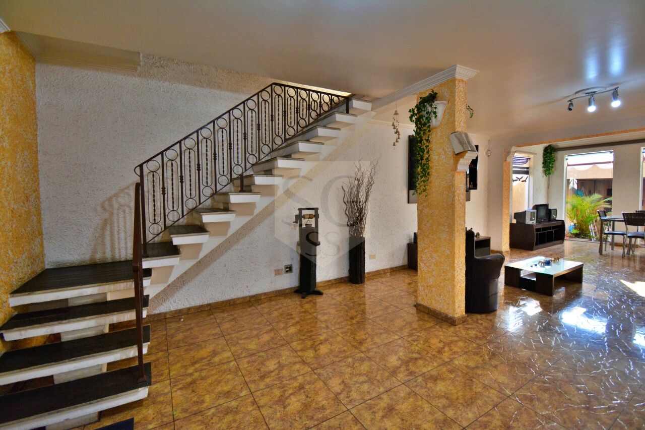 Sobrado em local super tranquilo da região, com dois dormitórios, sendo um deles suite duplex, banheiro que serve o outro dormitório, living amplo dividido em ate três ambientes com lavabo. Cozinha completa com armários embutidos, garagem para tres automoveis.